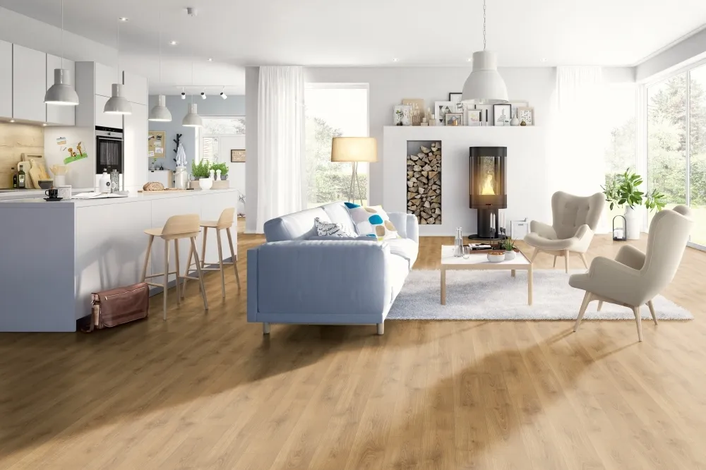 Oferta obejmuje panele w klasach ścieralności od AC4 do AC5, co oznacza większą odporność na codzienne użytkowanie. To ważne szczególnie tam, gdzie podłoga jest intensywnie eksploatowana - w salonie, przedpokoju, pokoju dziecięcym czy domowym biurze.