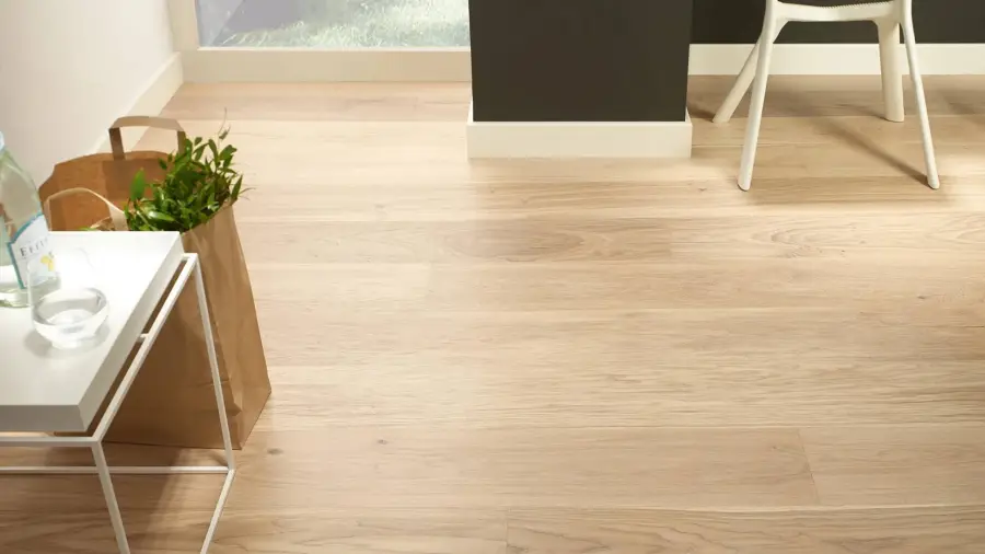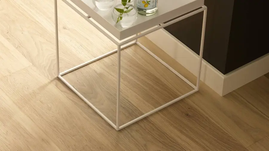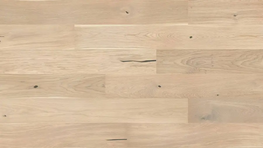 Podłoga Cheesecake Grande ma kremowe zabarwienie, uszlachetniona jest efektem szczotkowania podkreślającym naturalny rysunek słojów.
