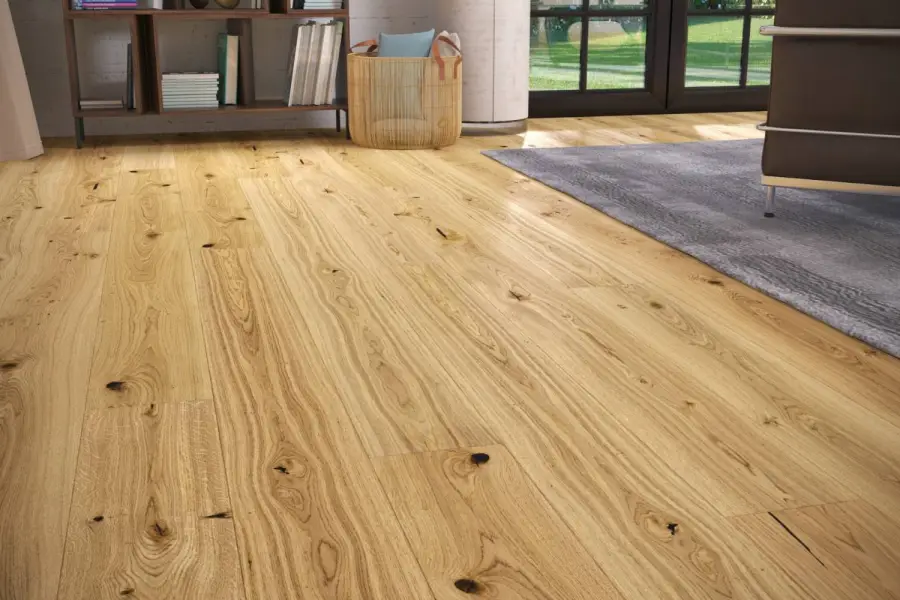 Naturalna elegancja: podłoga z widoczną różnorodnością kolorystyczną podkreśla autentyczność drewna, dodając wnętrzu charakteru i naturalnego piękna.