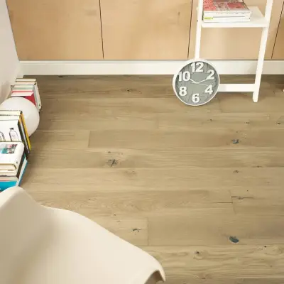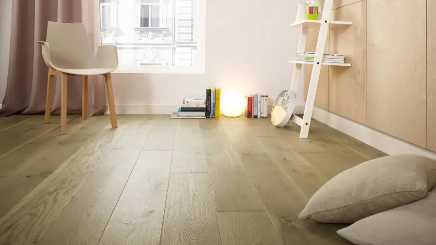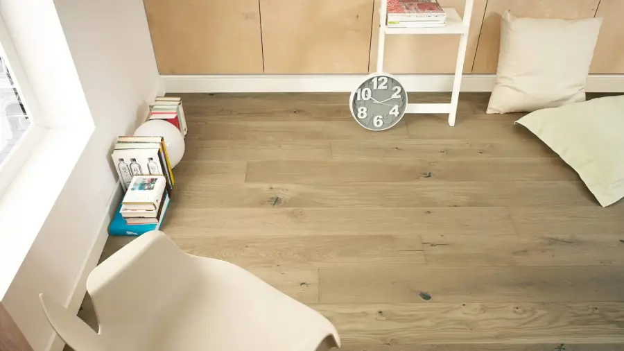 Toffe Grande - olejowana podłoga o jasnobrazowym zabarwieniu z deskami wykończonymi szczotkowaniem i fazowaniem.