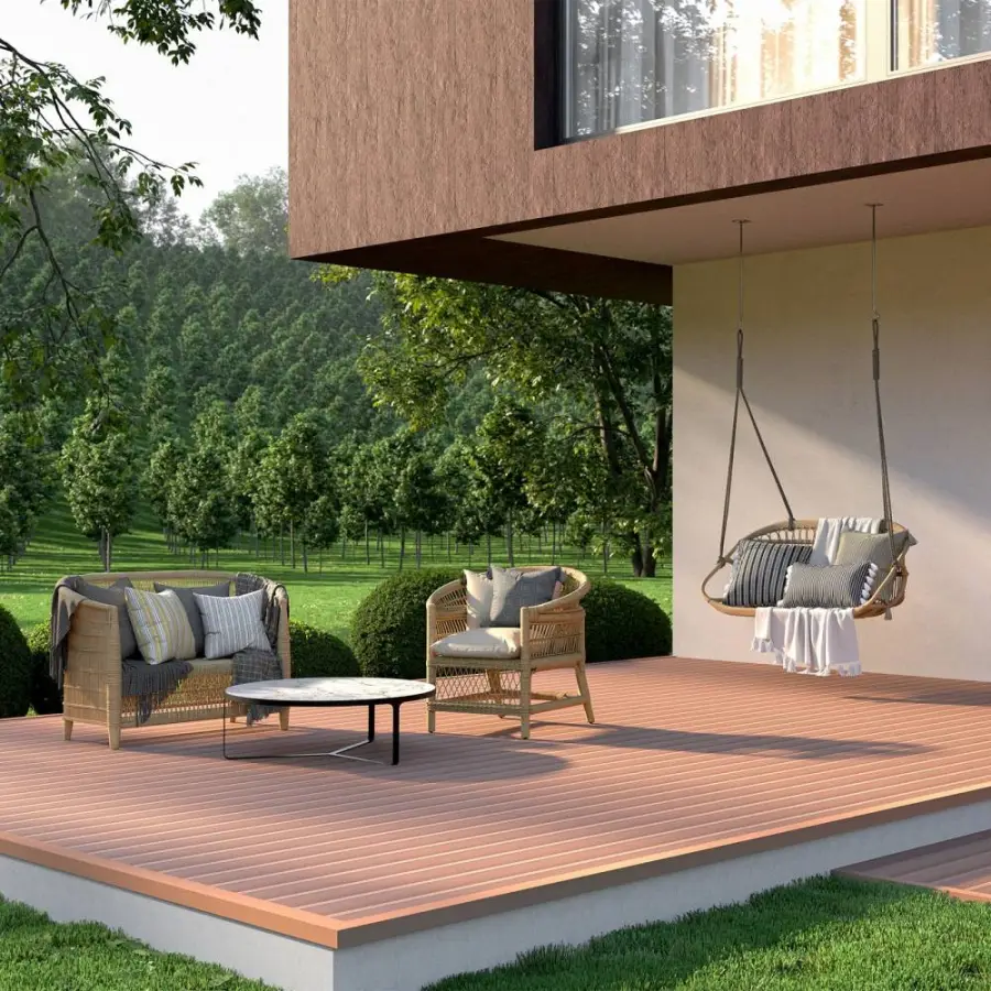 Wszechstronność zastosowania: Deski tarasowe dzięki swoim wyjątkowym właściwościom estetycznym i funkcjonalnym, znajdują zastosowanie w różnych przestrzeniach, zarówno prywatnych – tarasy, balkony, elementy architektury ogrodowej jak ścieżki, kładki, mostki ale również komercyjnych – zabudowy basenów i szeroko rozumianej przestrzeni publicznej.