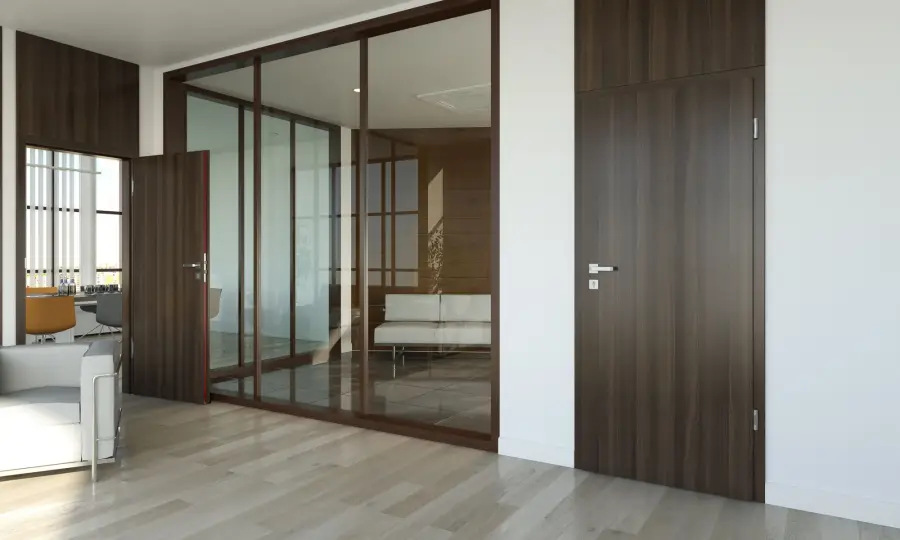 Do budynków użyteczności publicznej proponujemy komplet drzwi (skrzydło z ościeżnicą) w klasie akustycznej Rw = 37dB i ognioodporności klasy El30, dzięki wysokim parametrom izolacji akustycznej stanowią one barierę dla niepożądanego hałasu. Drzwi o zróżnicowanym poziomie akustyki można stosować w pokojach hotelowych, biurach, salach dydaktycznych i w innych budynkach publicznych.