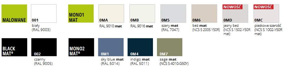 | Rodzaj wykończenia: | Lakierowane / Malowane |