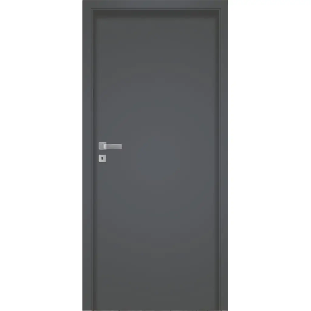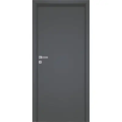 Drzwi zbudowane na bazie ramiaka drewnianego obłożonego dwiema gładkimi płytami HDF o powierzchni LAMISTONE CPL, SILKSTONE. Standardowe wypełnienie stanowi płyta wiórowa pełna. Dostępne w systemie przylgowym oraz bezprzylgowym.