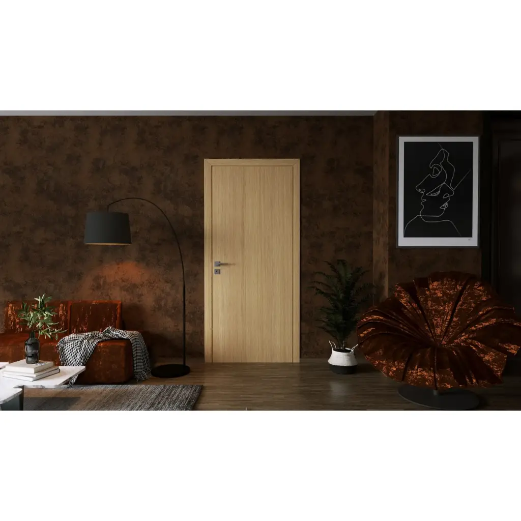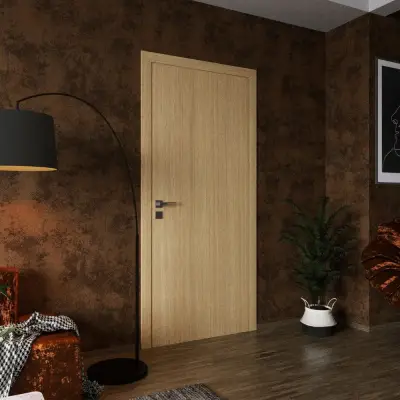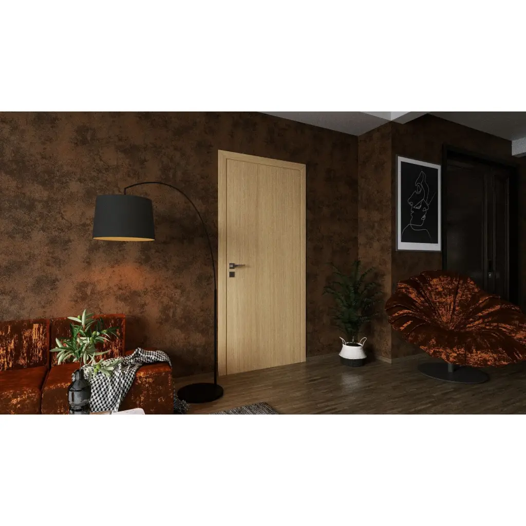 Drzwi z kolekcji GUFO zbudowane są z ramiaka drewnianego obłożonego dwiema gładkimi płytami HDF pokrytymi naturalną okleiną dębową. Standardowe wypełnienie stanowi płyta wiórowa pełna. Dostępne w systemie przylgowym, bezprzylgowym oraz REVES.