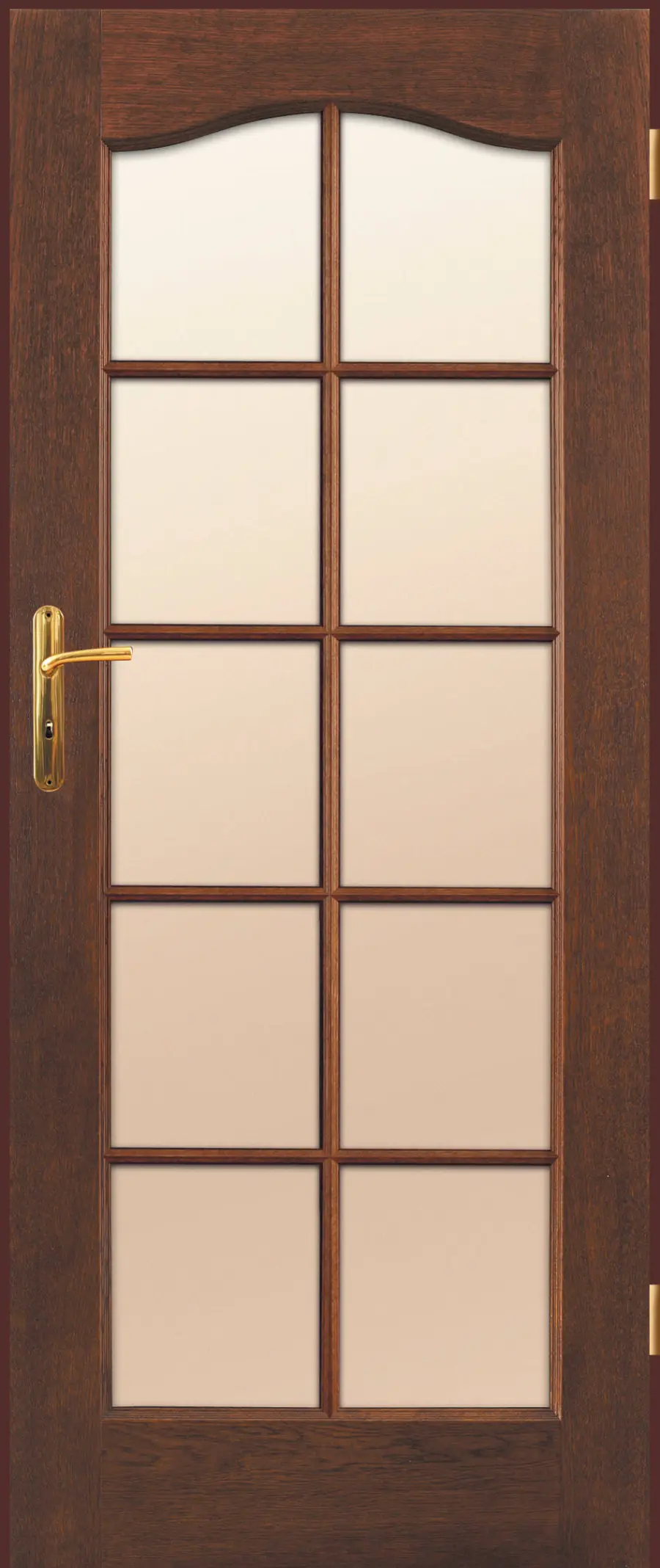 Drzwi INTERSOLID II zbudowane są z ramiaka drewnianego obłożonego dwiema płytami HDF pokrytymi naturalnymi okleinami. Płycina frezowana, ramiaki oraz płyciny fornirowane.