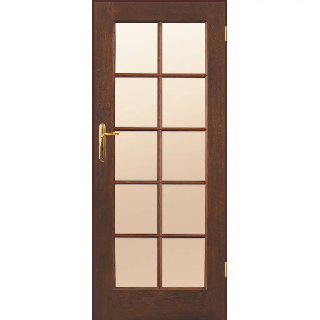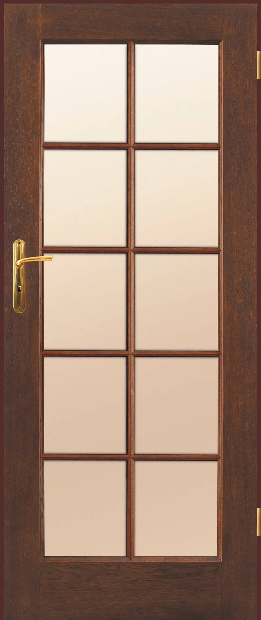 Drzwi INTERSOLID II zbudowane są z ramiaka drewnianego obłożonego dwiema płytami HDF pokrytymi naturalnymi okleinami. Płycina frezowana, ramiaki oraz płyciny fornirowane.