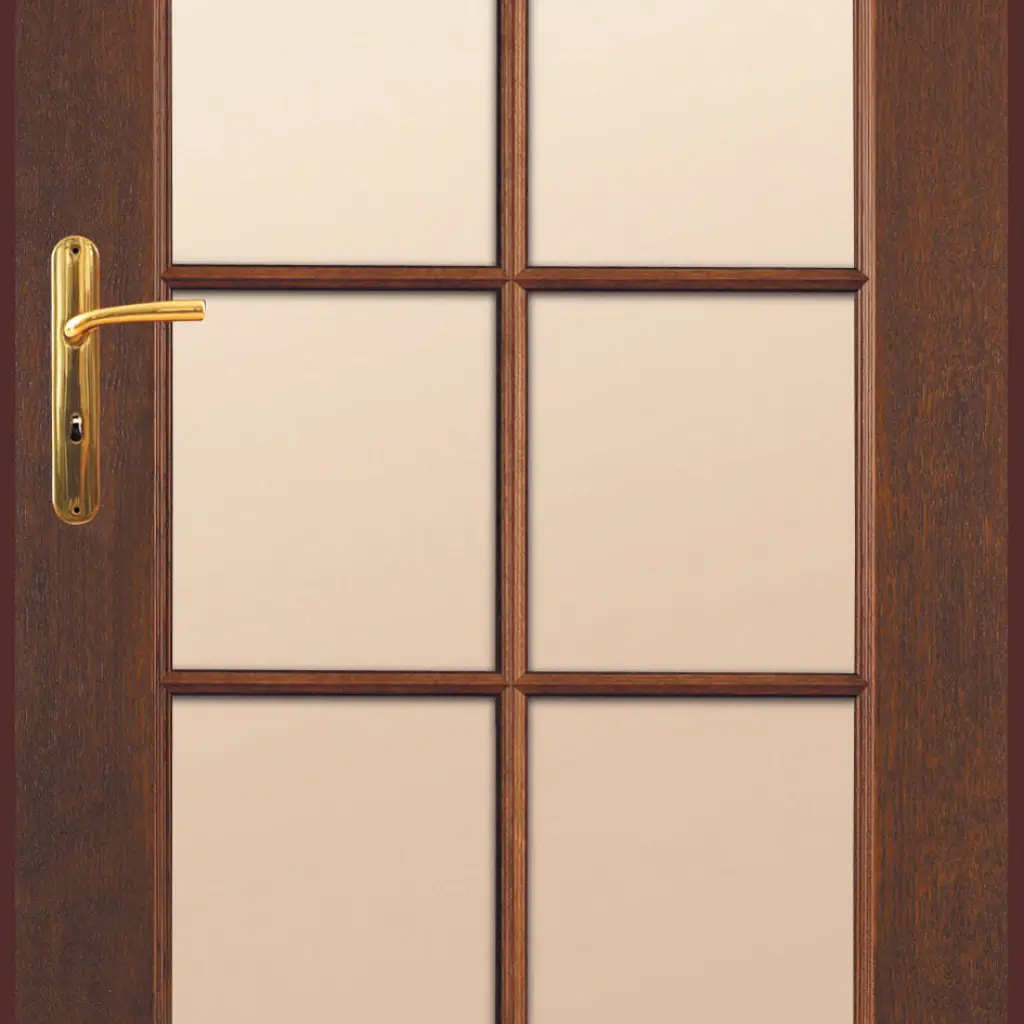 Drzwi INTERSOLID II zbudowane są z ramiaka drewnianego obłożonego dwiema płytami HDF pokrytymi naturalnymi okleinami. Płycina frezowana, ramiaki oraz płyciny fornirowane.