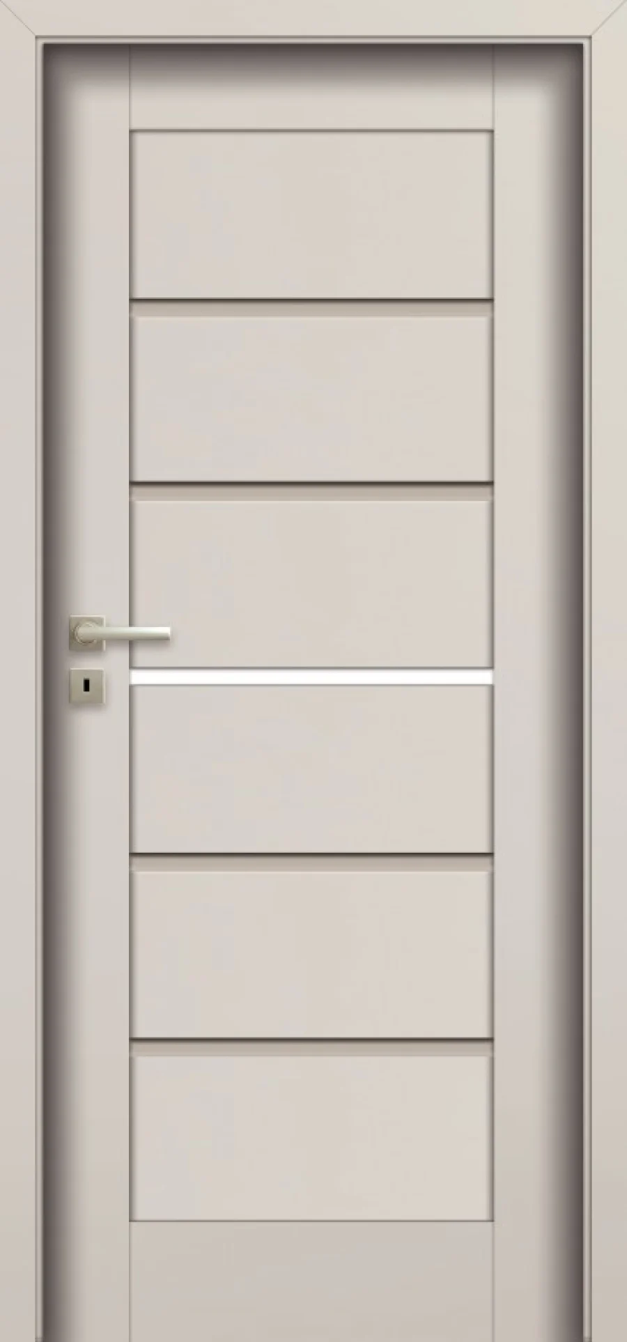 Pol-Skone Magro to kolekcja drzwi wewnętrznych łącząca nowoczesny design z solidnym wykonaniem. Konstrukcja skrzydła oparta jest na pionowych ramiakach z MDF o grubości 40 mm, zabezpieczonych przed działaniem wilgoci w technologii HOT FOIL, oraz poprzeczkach MDF o grubości 35 mm. Panele wypełniające pokryto wysokiej jakości powierzchnią UNI MAT PLUS, SILKSTONE lub LAMISTONE, co gwarantuje elegancki wygląd i trwałość.