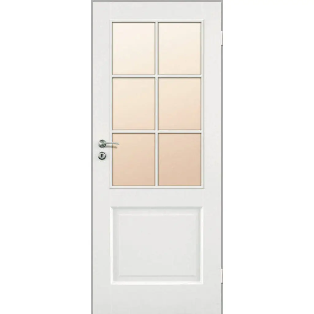 Skrzydła w kolekcji MODERN są przylgowe lub bezprzylgowe DUO. Ramiak drewniany obłożony dwiema gładkimi płytami HDF, malowana płycina z MDF.