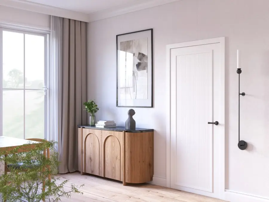 Drzwi wewnętrzne RIFLO to połączenie elegancji i funkcjonalności, które doskonale sprawdzi się w nowoczesnych i klasycznych wnętrzach. Ich konstrukcja opiera się na drewnianych ramiakach obłożonych dwiema gładkimi, malowanymi płytami HDF. Charakterystyczne ozdobne ryflowanie oraz stylowa ramka o szerokości 30 mm w kolorze skrzydła dodają im wyjątkowego wyglądu. Trójwarstwowy system malowania zapewnia wysoką trwałość i odporność powłoki, dzięki czemu drzwi zachowują estetyczny wygląd na długie lata. RIFLO to doskonały wybór dla osób ceniących styl i jakość.