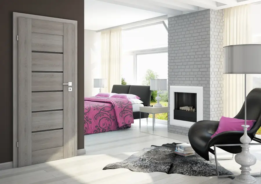 Drzwi wewnętrzne SEMPRE ALU oparte na popularnym wzornictwie, przy wykorzystaniu najwyższej jakości materiałów pokryte powłoką LAMISTONE, zabezpieczającą przed wycieraniem oraz działaniem środków chemicznych, lub powierzchnią SILKSTONE, z dodatkowym, niepowtarzalnym efektem struktury prawdziwego drewna. Drzwi zbudowane są z ramiaka drewnianego obłożonego dwiema gładkimi płytami HDF o powierzchni LAMISTONE CPL, SILKSTONE. Układ usłojenia ramiaka jest pionowy, na płycinach i panelach usłojenie poziome. Krawędzie paneli wykończone dekoracyjnymi listwami aluminiowymi.
