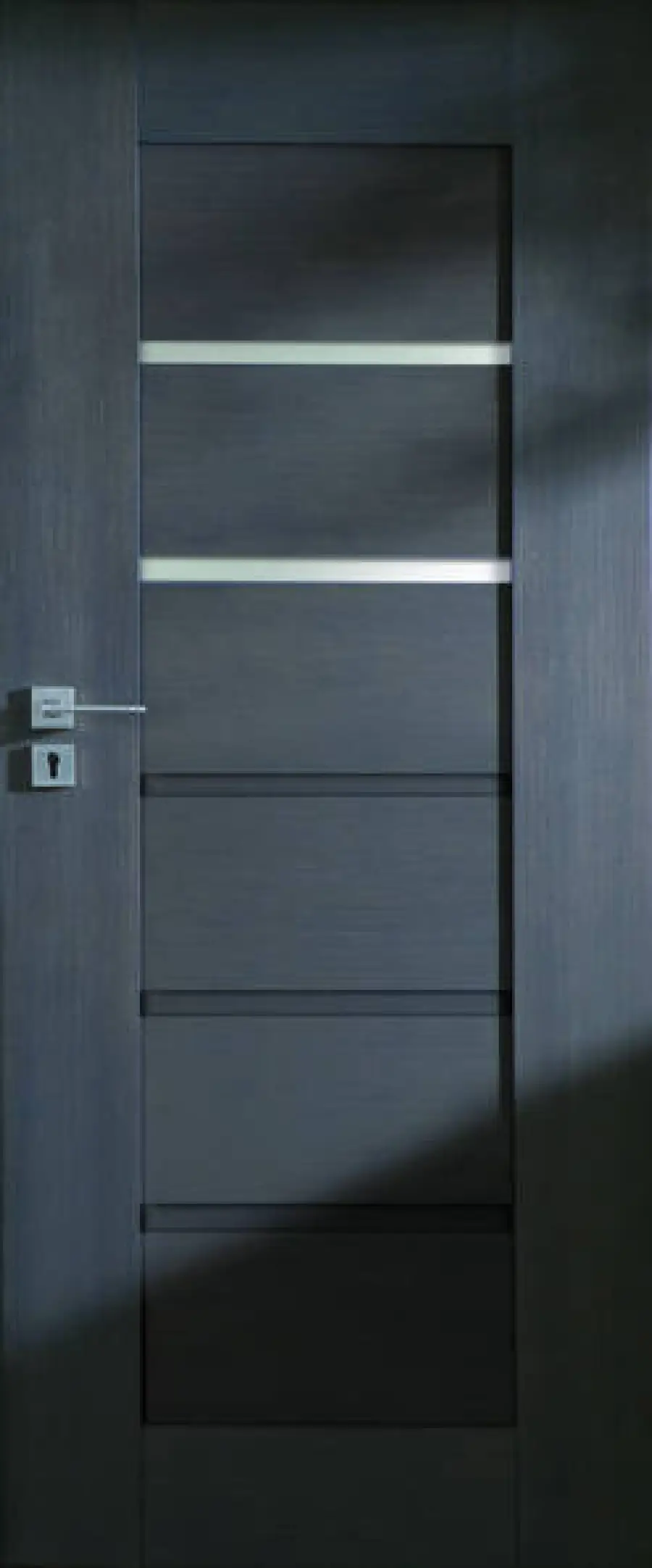 Drzwi wewnętrzne SEMPRE ALU oparte na popularnym wzornictwie, przy wykorzystaniu najwyższej jakości materiałów pokryte powłoką LAMISTONE, zabezpieczającą przed wycieraniem oraz działaniem środków chemicznych, lub powierzchnią SILKSTONE, z dodatkowym, niepowtarzalnym efektem struktury prawdziwego drewna. Drzwi zbudowane są z ramiaka drewnianego obłożonego dwiema gładkimi płytami HDF o powierzchni LAMISTONE CPL, SILKSTONE. Układ usłojenia ramiaka jest pionowy, na płycinach i panelach usłojenie poziome. Krawędzie paneli wykończone dekoracyjnymi listwami aluminiowymi.