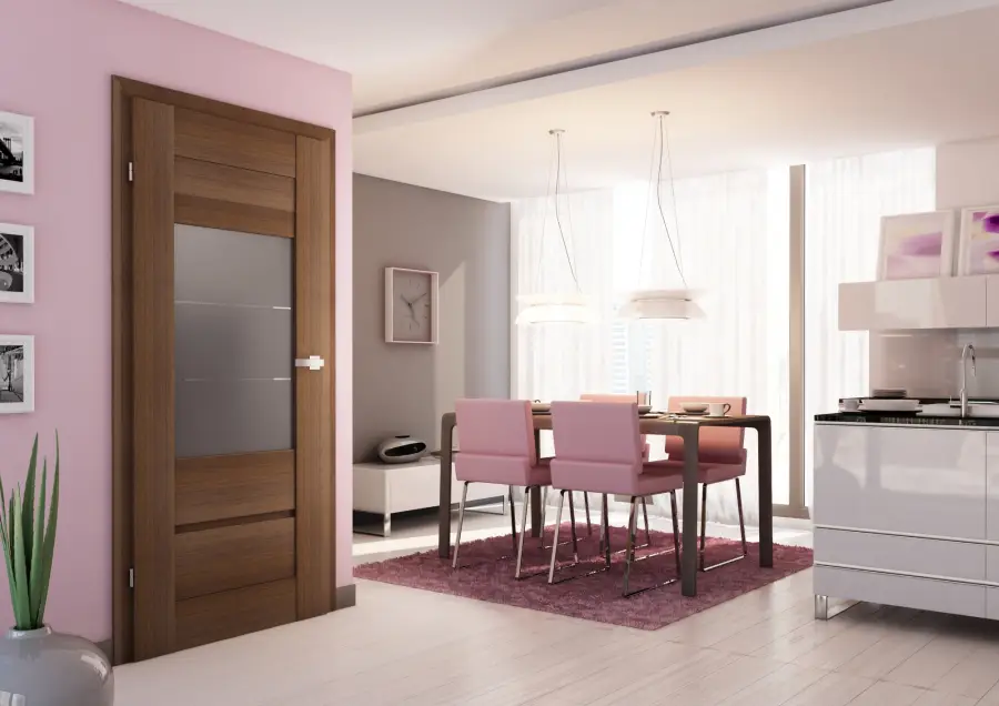 SEMPRE VERSE to drzwi, które idealnie wkonponują się do nowocześnie zaaranżowanych pomieszczeń. Szeroki wybór kolorystyki znacznie ułatwi dopasowanie drzwi do indywidualnych potrzeb każdego klienta. Drzwi zbudowane są z ramiaka drewnianego obłożonego dwiema gładkimi płytami HDF o powierzchni LAMISTONE CPL, SILKSTONE lub pokryte NATURALNYMI OKLEINAMI. Na ramiakach pionowych układ usłojenia pionowy, na panelach układ usłojenia poziomy.