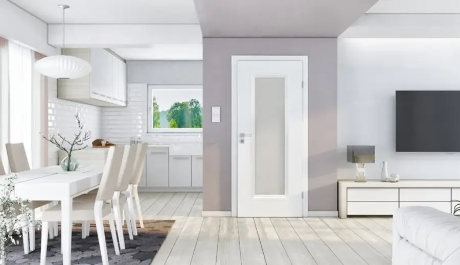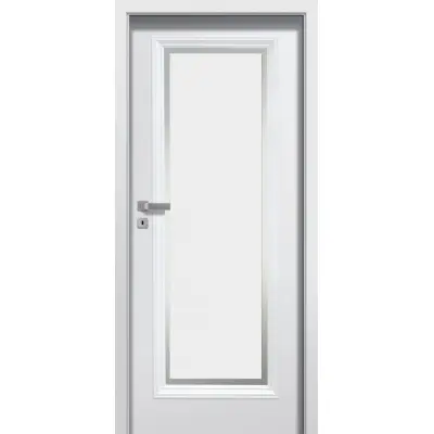 Drzwi zbudowane z ramiaka drewnianego obłożonego dwiema płytami HDF, pokrytymi powierzchnią malowaną ekologicznymi farbami z palety RAL i NCS. Drzwi są w systemie przylgowym i bezprzylgowym DUO.
