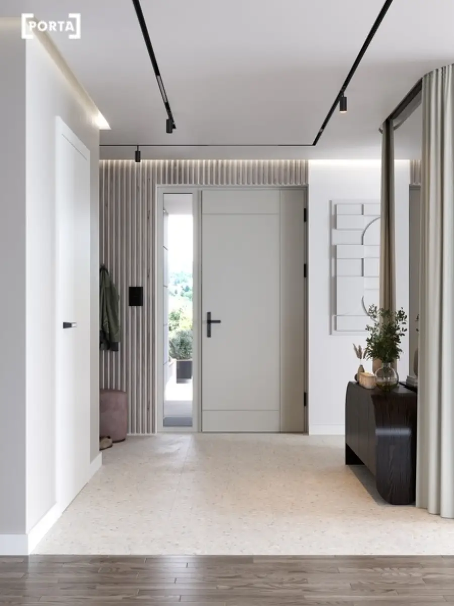 Drzwi z kolekcji PORTA THERMO dostępne są w czterech pakietach termicznych, dzięki czemu można je dostosować do swoich potrzeb. Drzwi posiadają trzy zawiasy czopowe z regulacją 3D, które przy współpracy z trzema podwójnymi bolcami antywyważeniowymi blokują możliwość demontażu skrzydła nawet w przypadku rozcięcia zawiasów. Wytrzymały zamek listwowy wyposażony jest w dwa haki antywłamaniowe górny i dolny ryglujące skrzydło po przekręceniu klucza, może być również wyposażony w dodatkowy górny zamek patent jako dodatkowy punkt ryglowania.