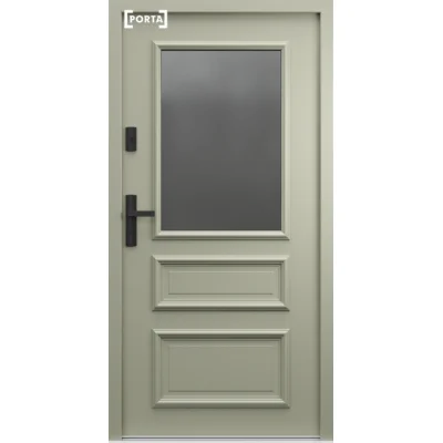 Drzwi z kolekcji PORTA THERMO dostępne są w czterech pakietach termicznych, dzięki czemu można je dostosować do swoich potrzeb. Drzwi posiadają trzy zawiasy czopowe z regulacją 3D, które przy współpracy z trzema podwójnymi bolcami antywyważeniowymi blokują możliwość demontażu skrzydła nawet w przypadku rozcięcia zawiasów. Wytrzymały zamek listwowy wyposażony jest w dwa haki antywłamaniowe górny i dolny ryglujące skrzydło po przekręceniu klucza, może być również wyposażony w dodatkowy górny zamek patent jako dodatkowy punkt ryglowania.
