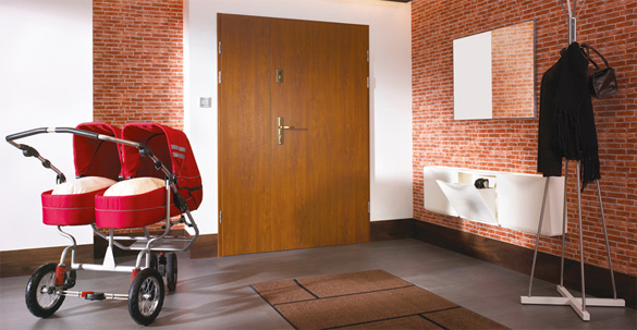 Drzwi stalowe ROMA PREMIUM stosowane są w szczególności jako drzwi zewnętrzne w budownictwie jednorodzinnym. Skrzydło drzwiowe jest wypełnione usztywnionym wsadem z użyciem materiału termoizolacyjnego, gwarantującym obszar izolacji termicznej zapobiegającej przed przemarzaniem. Metalowo-drewniana konstrukcja ościeżnicy zabezpiecza przed występowaniem mostków termicznych.