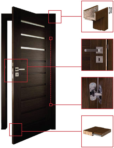 Ościeżnica Porta System Elegance przeznaczona jest bezprzylgowym skrzydłom drzwiowym. Dzięki zastosowaniu regulowanych zawiasów (trzy płaszczyzny), mamy możliwość idealnego dopasowania skrzydła do ościeżnicy. Ościeżnica opaskowa została skonstruowana tak, aby umożliwiła nam dopasowanie jej do grubości muru, co ma wpływ na niezwykle estetyczne wykończenie konstrukcji. Wzmocnienie kieszeni na zawiasy gwarantuje stabilność, nawet przy bardzo nasilonej eksploatacji drzwi.