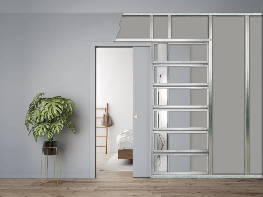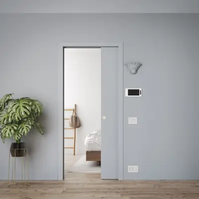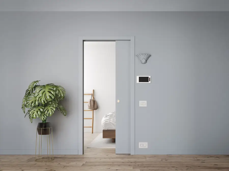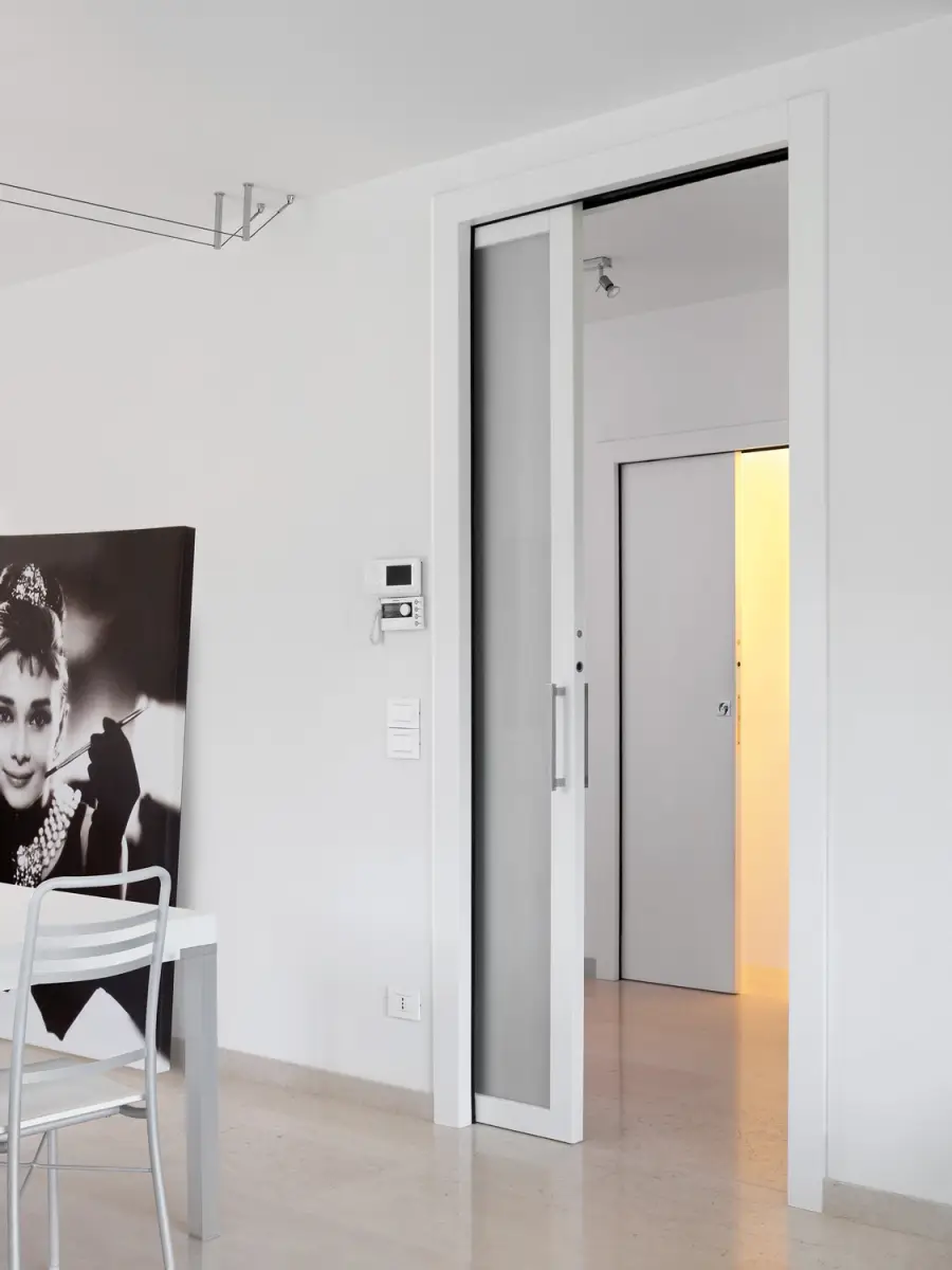 Drzwi chowane w ścianę z klasyczną ościeżnicą to wybór dla tych, którzy chcą maksymalnie wykorzystać przestrzeń dostępną w domu i zachować klasyczną stylistykę wnętrza. Drzwi przesuwne chowane w ścianie z ościeżnicą i opaskami maskującymi świetnie komponują sie jeśli pozostałe drzwi w domu także mają klasyczny styl. Model LUCE daje możliwość montażu włączników światła, gniazdek oraz kinkietów w miejscu kasety.