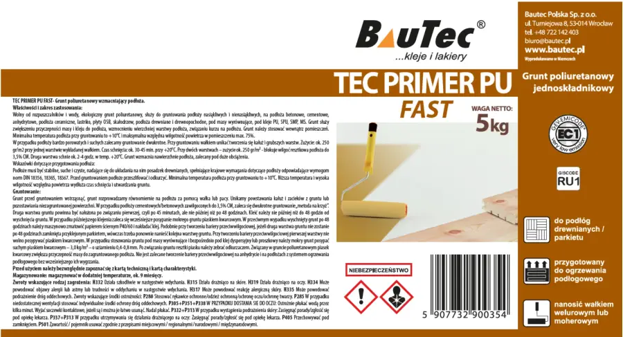 Wolny od rozpuszczalników, ekologiczny grunt poliuretanowy, służy do gruntowania podłoży nasiąkliwych i nienasiąkliwych, na podłoża betonowe C 25/30, cementowe, anhydrytowe, przeszlifowane płyty gipsowe, podłoża ceramiczne, lastriko, płyty OSB, skałodrzew, podłoża drewniane, pod masy wyrównujące, pod kleje poliuretanowe PU, kleje polimerowe MS, kleje poliuretanowo-silanowe SPU. Grunt służy zwiększeniu przyczepności masy i kleju do podłoża, wzmocnieniu wierzchniej warstwy podłoża.Grunt należy stosować wewnątrz pomieszczeń. Minimalna temperatura podłoża przy gruntowaniu to +15C i maksymalna wilgotność względna powietrza w pomieszczeniu 75%. W przypadku podłoży bardzo porowatych i suchych zalecamy gruntowaniedwukrotne. Przy gruntowaniu unikać tworzenia się kałużi grubszych warstw.
