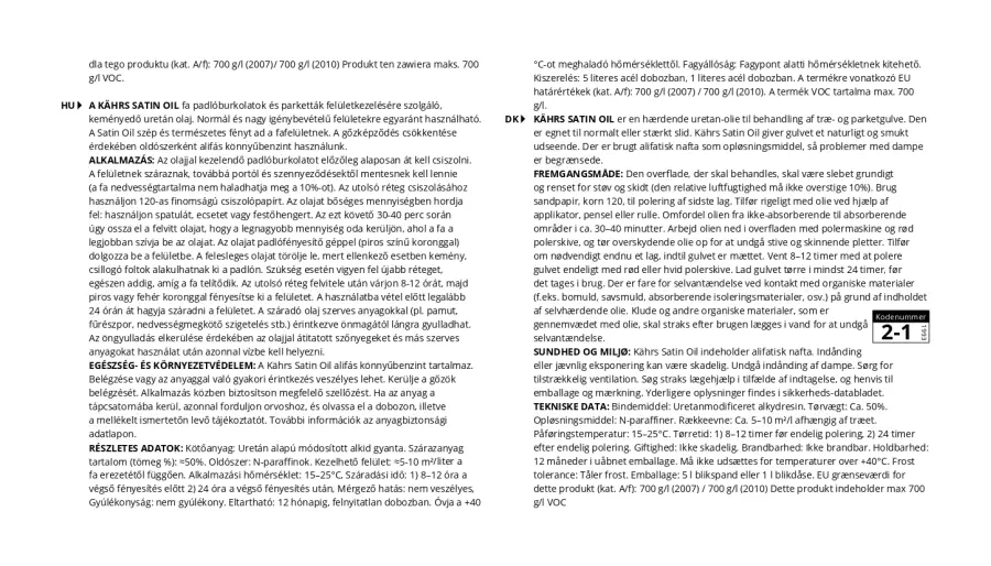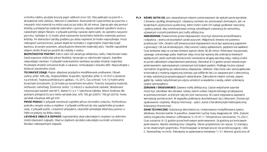 Kahrs Satin Oil to wysokiej jakości utwardzalny olej poliuretanowy, stworzony specjalnie do pielęgnacji fabrycznie olejowanych podłóg drewnianych i parkietów. Doskonale chroni powierzchnię drewna, nadając jej elegancki połysk i wydłużając trwałość wykończenia.