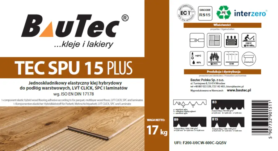 Klej do drewna BauTec TEC SPU 15 PLUS 17kg BauTec TEC SPU-15P