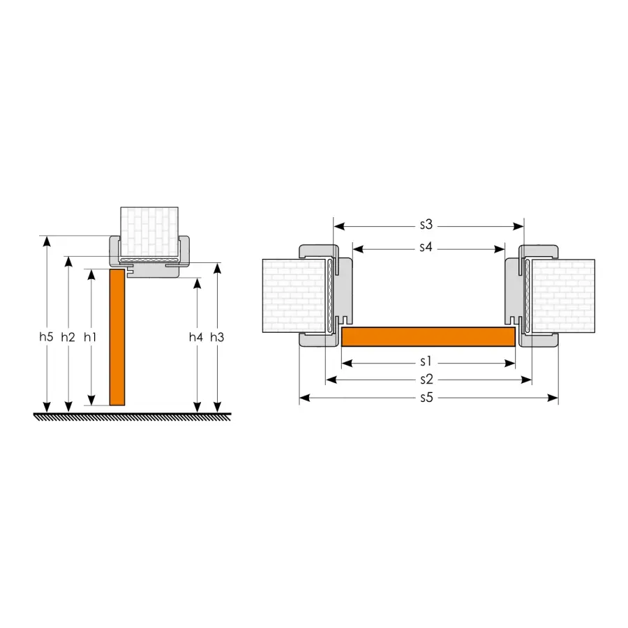 Ościeżnica regulowana wykonana jest w rozmiarach na grubość muru w przedziałach do 20 mm. Minimalna grubość muru wynosi 75 mm.
