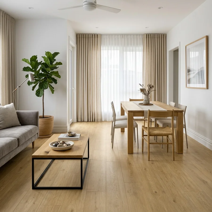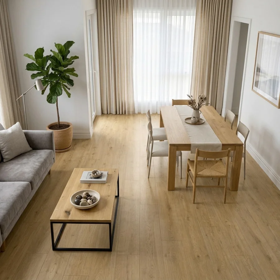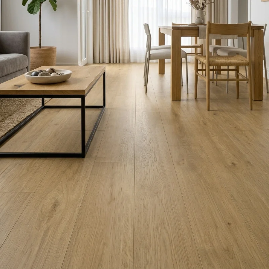 Odporne na zarysowania panele laminowane z gwarancją odporności na wodę 72 h – bez obaw o rozlane płyny w kuchni czy salonie.