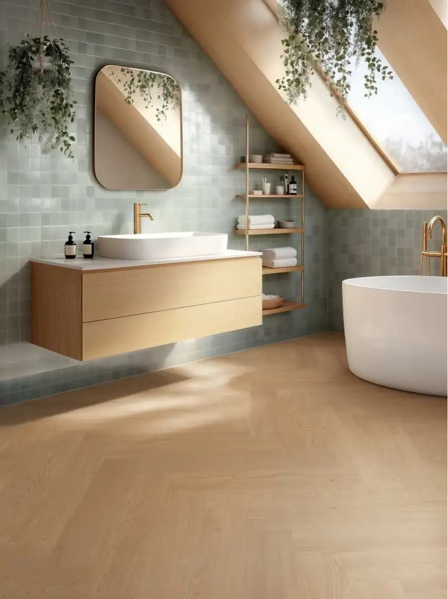 Panele podłogowe BALTERIO EMOZIONI jodełka to idealne połączenie elegancji, nowoczesnego designu oraz wysokiej funkcjonalności. Kolekcja inspirowana naturalnym drewnem oferuje modne, a zarazem ponadczasowe wzornictwo, które doskonale wpisuje się w aranżacje klasyczne, nowoczesne oraz loftowe.Matowe lub szczotkowane wykończenie nadaje podłodze wyjątkowej głębi i podkreśla naturalną strukturę drewna. Dzięki zastosowaniu czterostronnej zagniatanej V-fugi, panele perfekcyjnie imitują osobne deski, tworząc realistyczny efekt drewnianej podłogi w eleganckim układzie jodełki.
