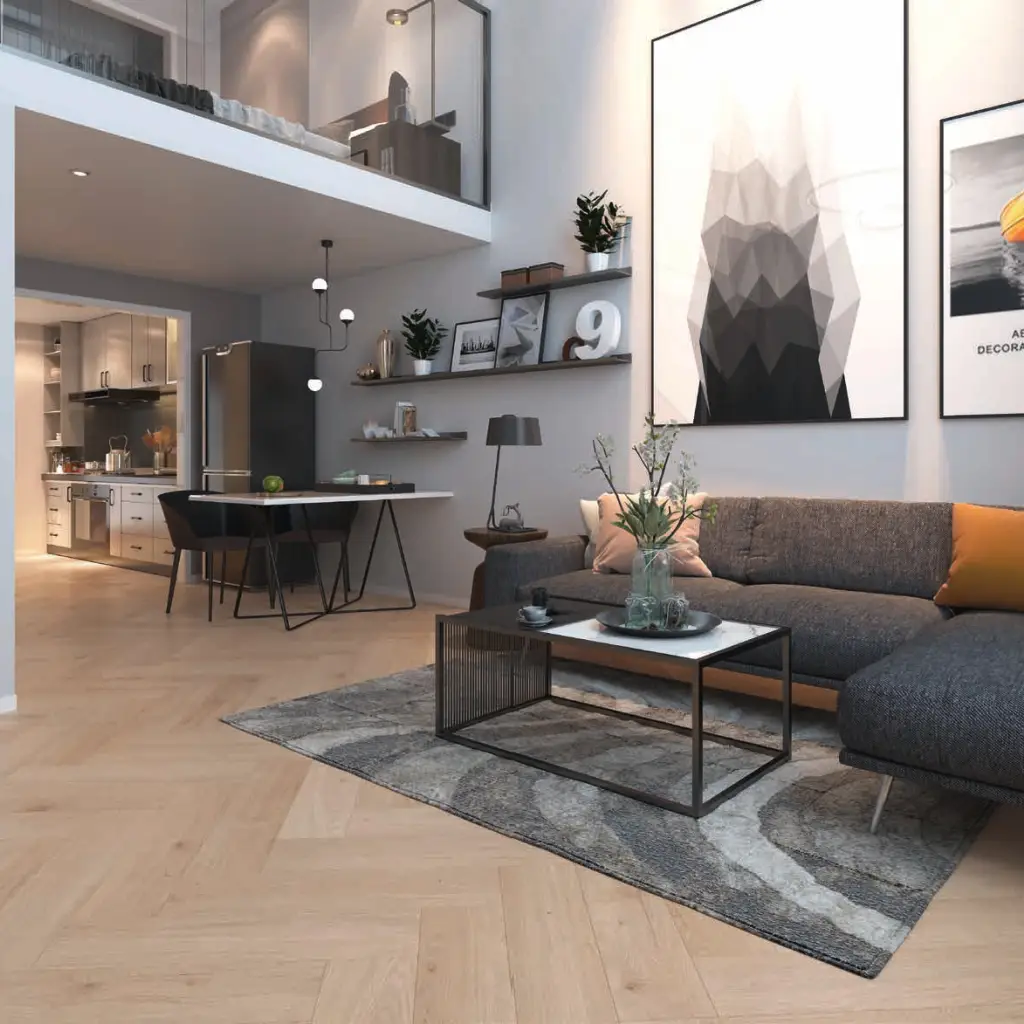 Manor to także technologia Fold-Down - deski są układane w systemie “na klik” - wystarczy połączyć je dłuższym bokiem pod kątem 20-30 stopni, a później docisnąć krótszy, by szybko i stabilnie ułożyć podłogę. Panele w jodełkę od Classen możesz także układać na kilka sposobów, wykorzystując załamanie światła dla osiągnięcia oczekiwanego efektu: wzdłużnie, co optycznie wydłuży pomieszczenie, poprzecznie, dodając mu optycznie wizualnie szerokości lub po przekątnej, tworząc efektowny kontrast. Panele posiadają także matową strukturę, dzięki czemu dodają ponadczasowej elegancji i naturalności każdej przestrzeni, w której zostaną zamontowane.  Z Manor pożegnasz także, charakterystyczne dla tradycyjnych parkietów w jodełkę, skrzypienie podłogi.