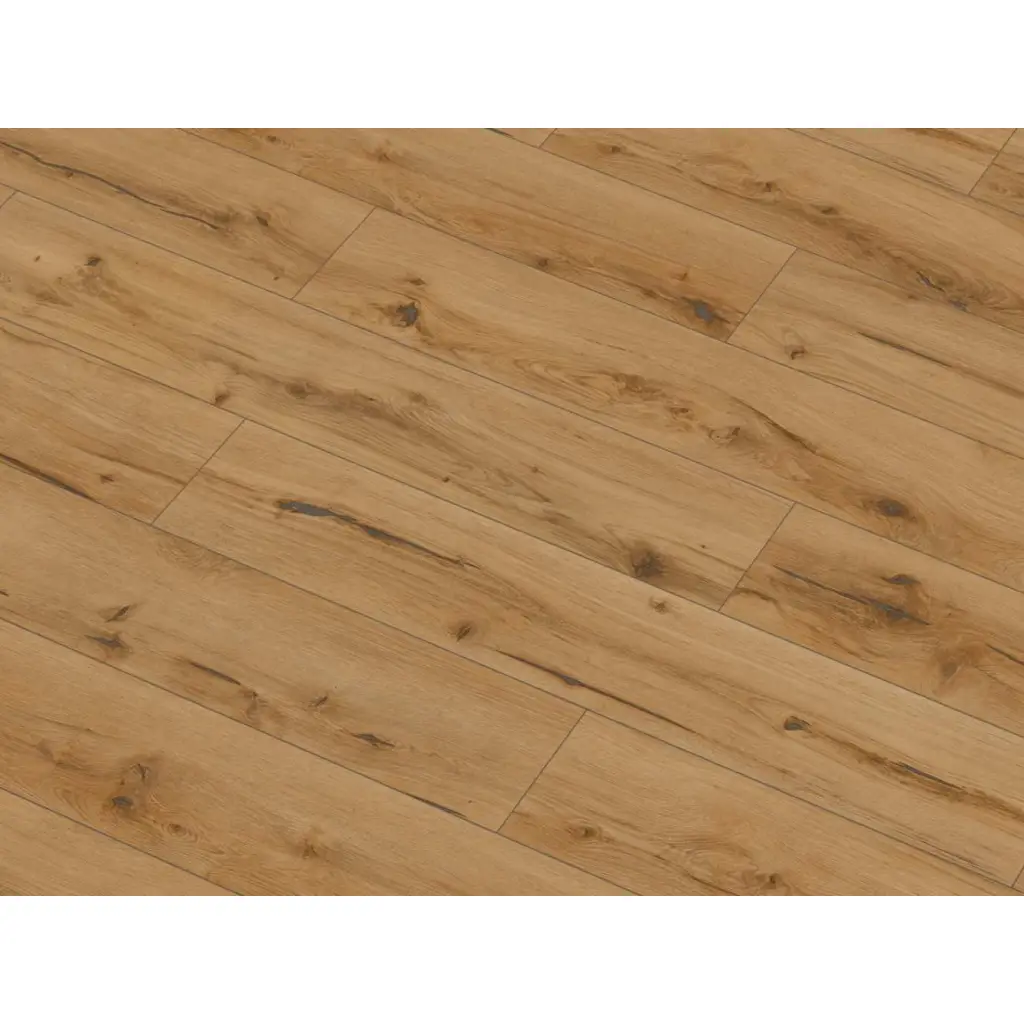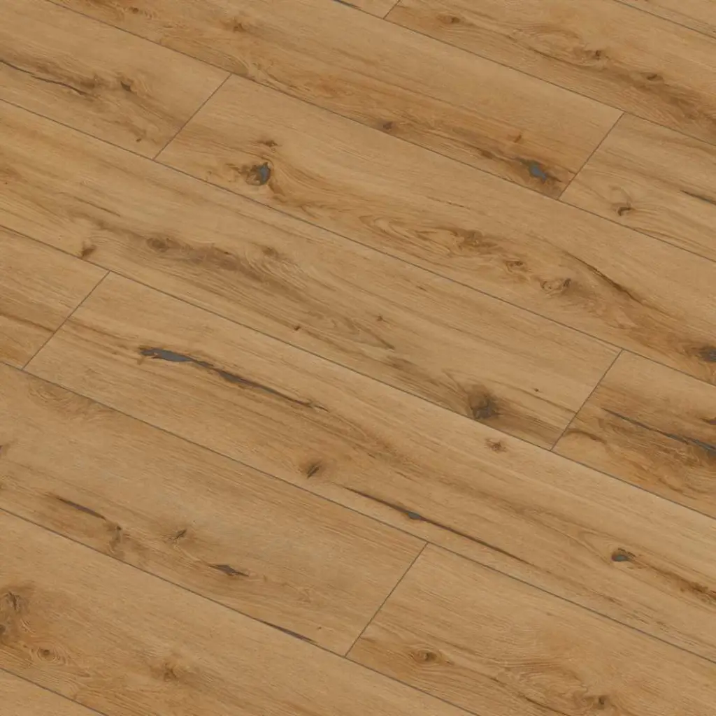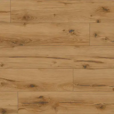 HydroClick to panele wodoodporne - aż do 100 godzin kontaktu z cieczą. Dzięki temu idealnie sprawdzają się w pomieszczeniach narażonych na bezpośredni kontakt z nią, jak wiatrołap czy kuchnia. Innowacyjnie frezowana V-fuga oraz dodatkowe zabezpieczenie krawędzi paneli w postaci warstwy wosku powstrzymują przenikanie cieczy pod podłogi, równocześnie wizualnie odcinając poszczególne deski od siebie, dzięki czemu przypominają one klasyczny, drewniany parkiet. Efekt wzmaga synchroniczna struktura paneli, przekładająca się na idealne odwzorowanie usłojenia prawdziwego, dębowego drewna.