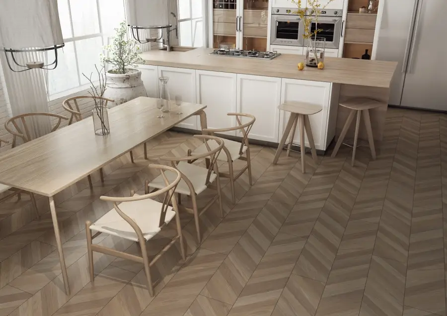 Kolekcja Paloma jest cała matowa, a jodełkowe dekory pozwalają na zaaranżowanie eklektycznego wnętrza. Jej dodatkowym atutem są dekory mające odpowiedniki w płycie meblowej lub Walldesign, co otwiera nowe możliwości aranżacyjne.