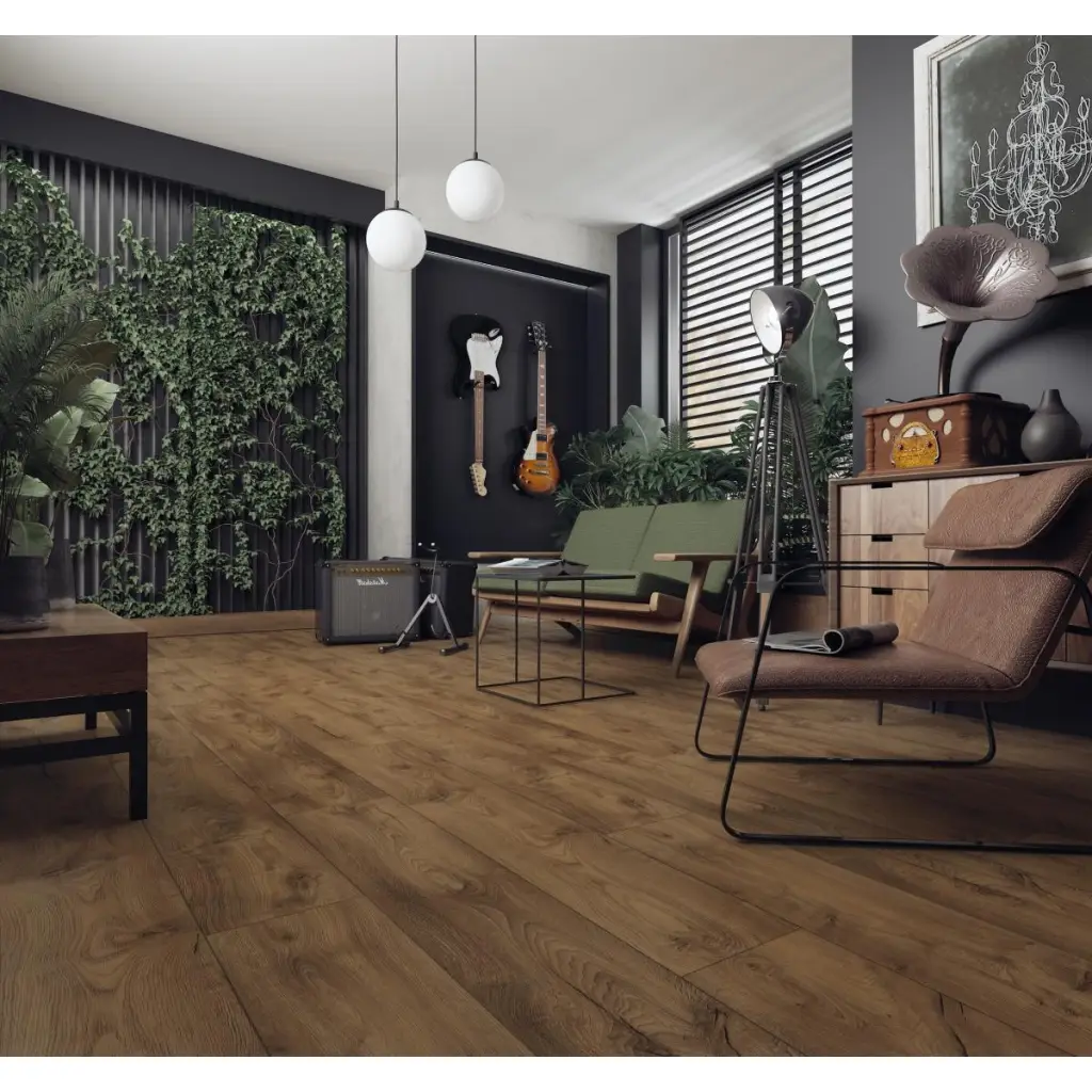 Synchroniczna struktura doskonale oddaje charakter drewna i wprowadza naturę do wnętrza.