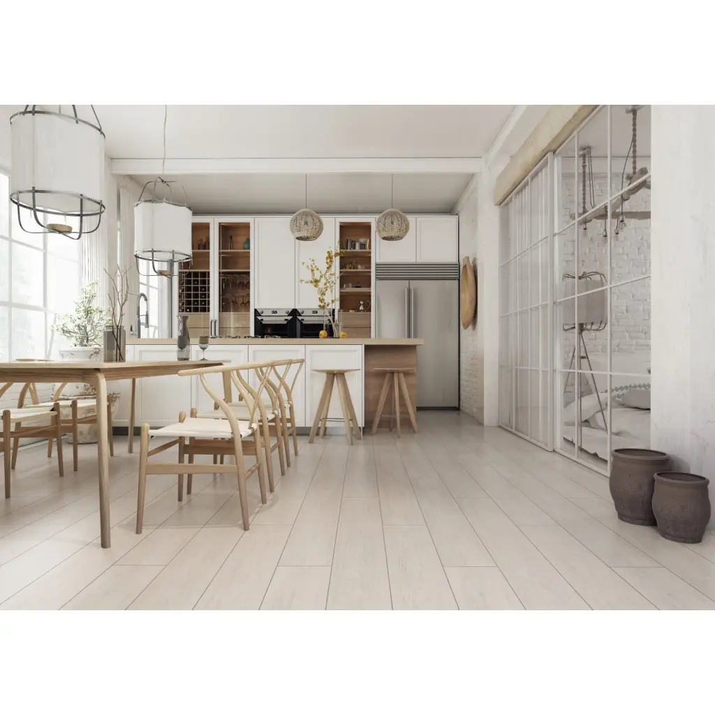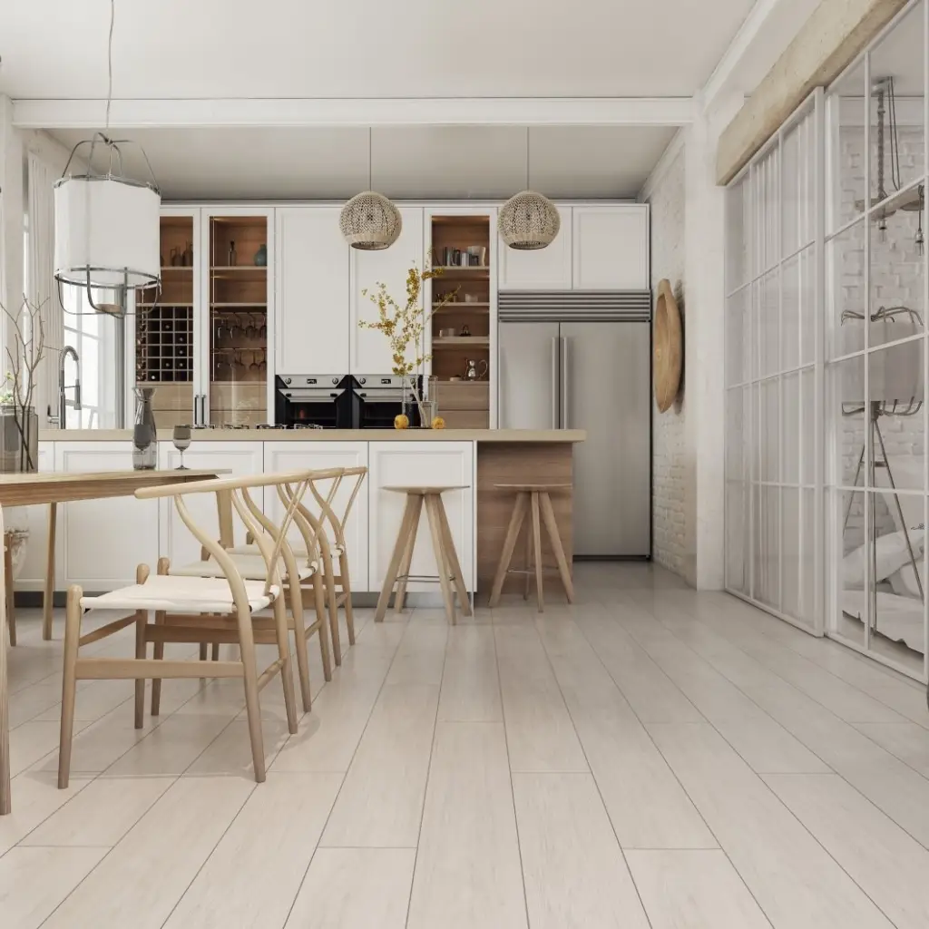 Wodoodporna podłoga o szerokiej desce, która optycznie powiększa przestrzeń.