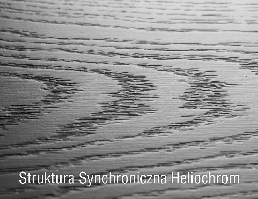 Struktury synchroniczne – kolejnym krokiem w rozwoju możliwości odwzorowywania drewna był zakup specjalnych pras KT, które umożliwiły produkcję głębokich struktur synchronicznych. Struktura synchroniczna to swego rodzaju „płaskorzeźba” idealnie dopasowana do rysunku drewna (sęki drewna mają swoje własne usłojenie, a struktura synchroniczna je podkreśla).
