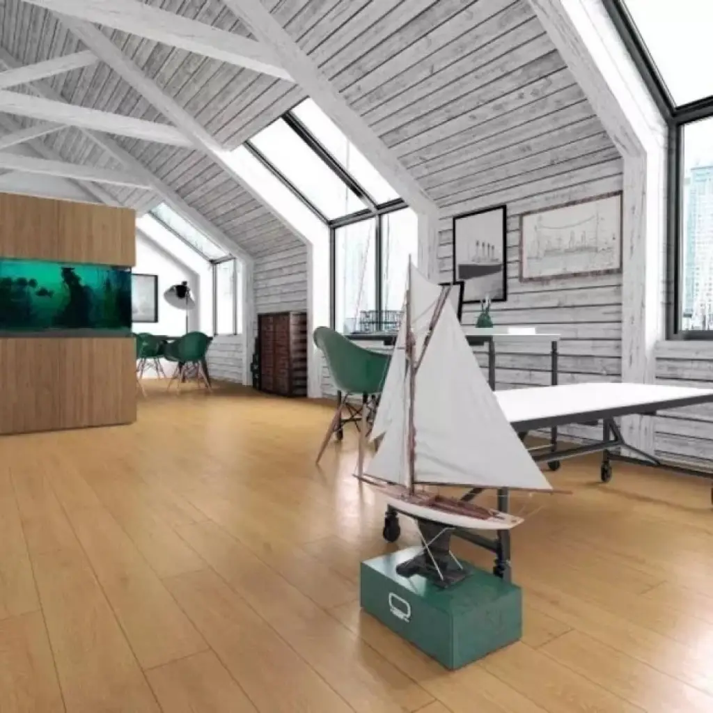 Panele podłogowe Dąb bursztyn to ponadczasowy, elegancki element wykończenia wnętrz. Montaż paneli jest szybki i łatwy, posiadają odporność na wodę do 24h. Panele inspirowane dębowym drewnem prezentują się elegancko i stylowo w każdym wnętrzu. Ich unikalna struktura postarzanego drewna zapewnia im naturalny i niepowtarzalny wygląd.