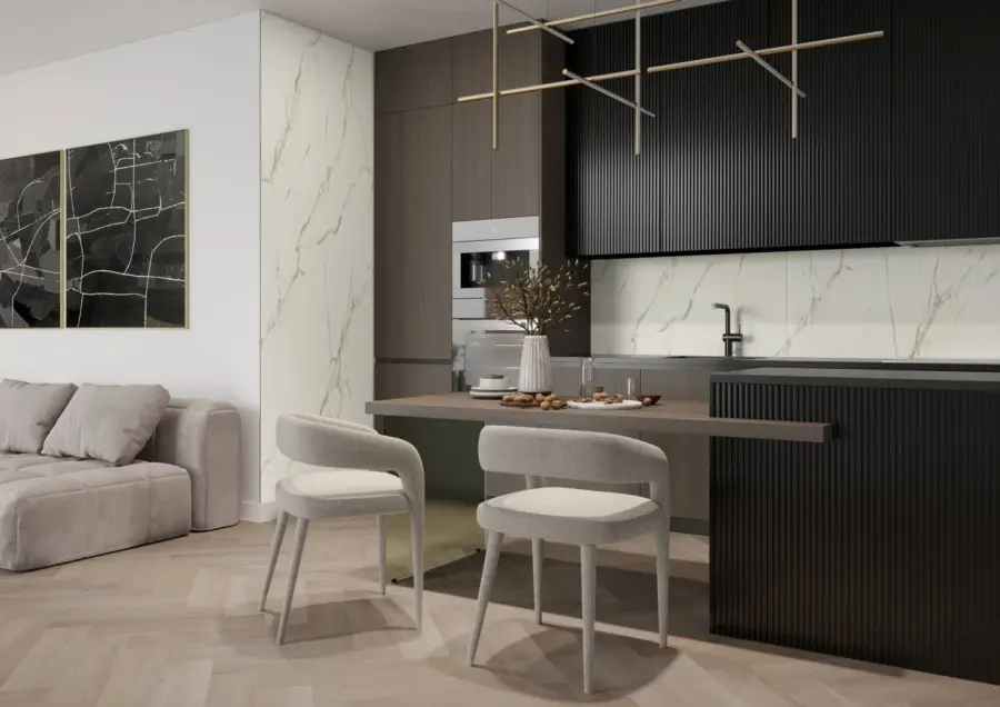 Dzięki trwałej, zmywalnej powierzchni ściany Modee doskonale sprawdzają się w kuchni – zwłaszcza w strefach narażonych na zachlapania i zabrudzenia, takich jak okolice zlewu czy płyty indukcyjnej. Panele skutecznie chronią przed tłuszczem, wilgocią i codziennym użytkowaniem, a ich nieporowata struktura zapobiega wnikaniu brudu i zapachów. Są łatwe w czyszczeniu – wystarczy wilgotna ściereczka, by przywrócić im świeży wygląd, bez konieczności użycia agresywnych środków czyszczących. Co ważne, Modee można montować również w sąsiedztwie płyt indukcyjnych, gdzie nie występuje bezpośrednie działanie wysokiej temperatury. To praktyczne i estetyczne rozwiązanie, które pozwala na szybką metamorfozę kuchni bez skuwania płytek czy długiego remontu – z nowoczesnym efektem w zaledwie dwa dni.