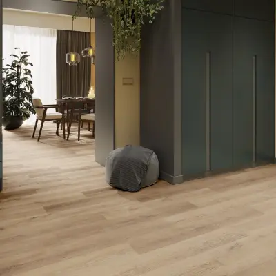 Panele Next Step wyprodukowane są w 100% z materiałów wodoodpornych, nie są więc podatne na działanie wilgoci. Zamek łączący panele jest w pełni wodoszczelny. Dzięki temu, panele winylowe nadają się do łazienki, kuchni czy na korytarz.