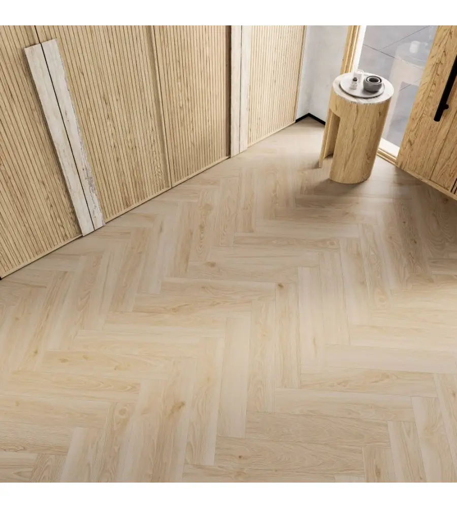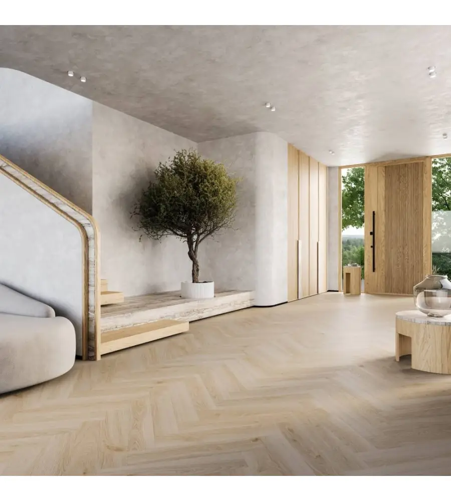 Klasyka w nowoczesnym wydaniu. Układ jodełki w herbacianym tonie nadaje wnętrzu wyjątkowy rytm i ponadczasową elegancję, która przyciąga spojrzenia.