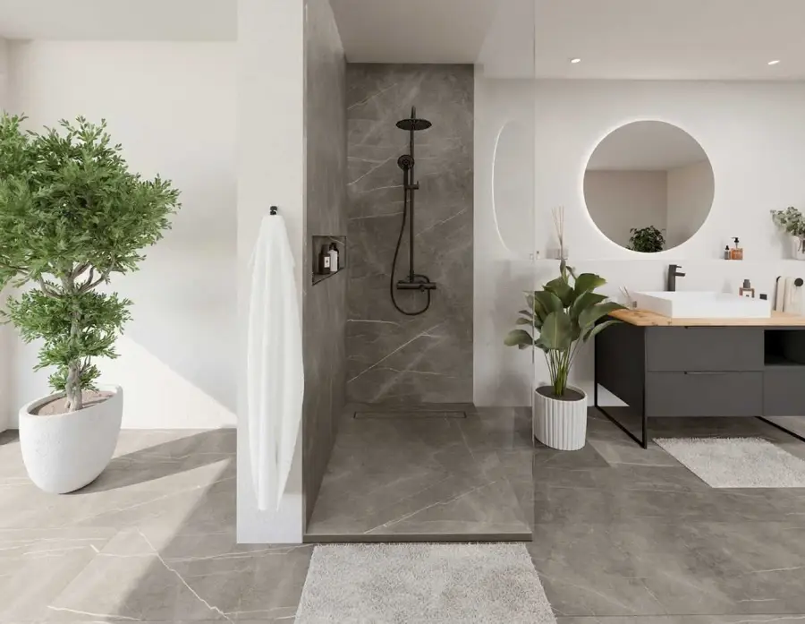 Ceramin Tiles to nowoczesne panele winylowe do montażu na ścianie i podłodze, które łączą wygląd klasycznej ceramiki lub drewna z dużo lżejszą konstrukcją. Dzięki innowacyjnemu podkładowi Ceramin® okładzina jest wyjątkowo wytrzymała i stabilna, a jednocześnie ma tylko 3 mm grubości, co ułatwia transport i instalację. Wodoodporny system profili pozwala stosować płytki w wilgotnych pomieszczeniach (np. łazienka, kuchnia), a eleganckie mikrofugi sprawiają, że nie ma potrzeby fugowania – efekt jest estetyczny i łatwy w utrzymaniu czystości.