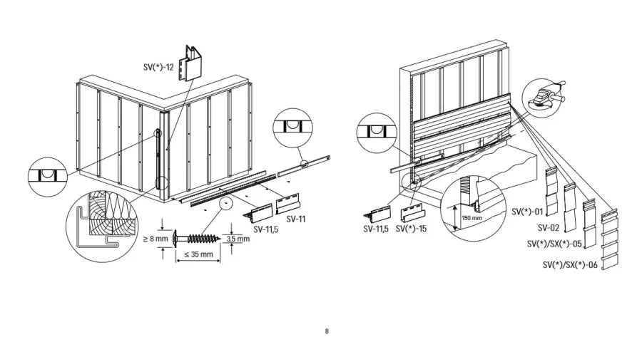 UWAGA: Nie można montować na styropianie, styropian można zastosować między konstrukcją a lamelami.