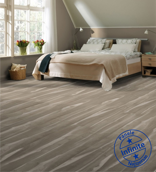 Najszersze panele laminowane Infinite umożliwią Tobie doświadczenie poczucia nieskończoności, dzięki podłodze, która oddaje wrażenie niekończących się drewnianych desek. Niezauważalne spojenia i podłużne fazy powodują, że deska zdaje się być bardzo długa, rozciągając się przez cały pokój. Naturalny efekt pogłębiony jest różnorodnością wzorów od tradycyjnego dębu, do jaśniejszych odcieni bieli podkorowej. Panele Infinite łączą swój naturalny charakter z solidną, trwałą, nowoczesną powierzchnią wytrzymałą na ogólne zużycie, wgniecenia i ścieranie. Ślady swobodnie można zmyć z odpornej na zabrudzenia powierzchni, a systematyczne odkurzanie sprawi, że przez cały czas będzie wyglądała jak nowa. Dzięki wysokiej jakości wykończenia, ta trwała, niezawodna podłoga doskonale nadaje się do bardziej uczęszczanych pomieszczeń Twojego domu.