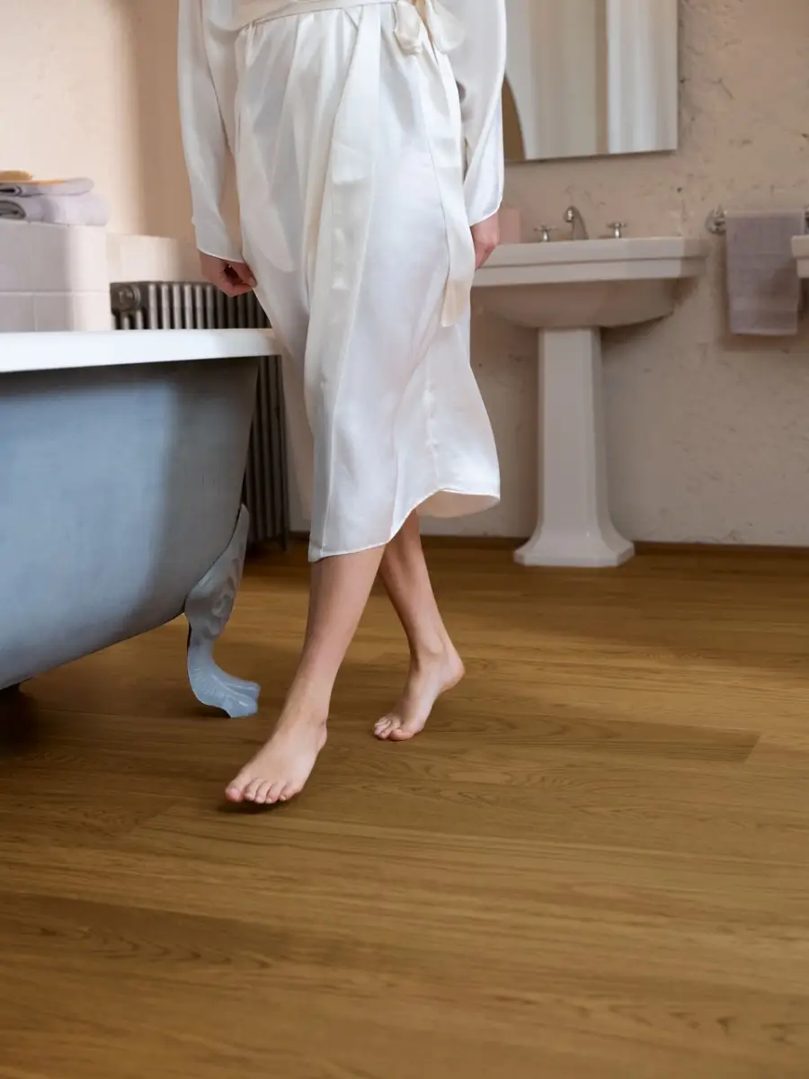 Technologia Wood for Life chroni panele przed osadzaniem się błota, rozlanej żywności i zanieczyszczeń w szczelinach, co zapewnia trwałość i estetyczny wygląd przez wiele lat. To gwarancja, że panele wodoodporne Quick-Step będą wyglądały jak nowe nawet przy intensywnym użytkowaniu.