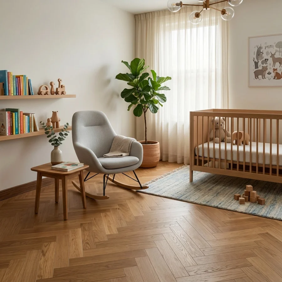 Proces szczotkowania uwydatnia naturalny układ słojów i nadaje powierzchni subtelną, elegancką fakturę, przyjemną w dotyku. Dzięki temu podłoga zachowuje autentyczny, szlachetny charakter drewna, który doskonale komponuje się zarówno z nowoczesnymi aranżacjami, jak i bardziej klasycznymi, przytulnymi wnętrzami.