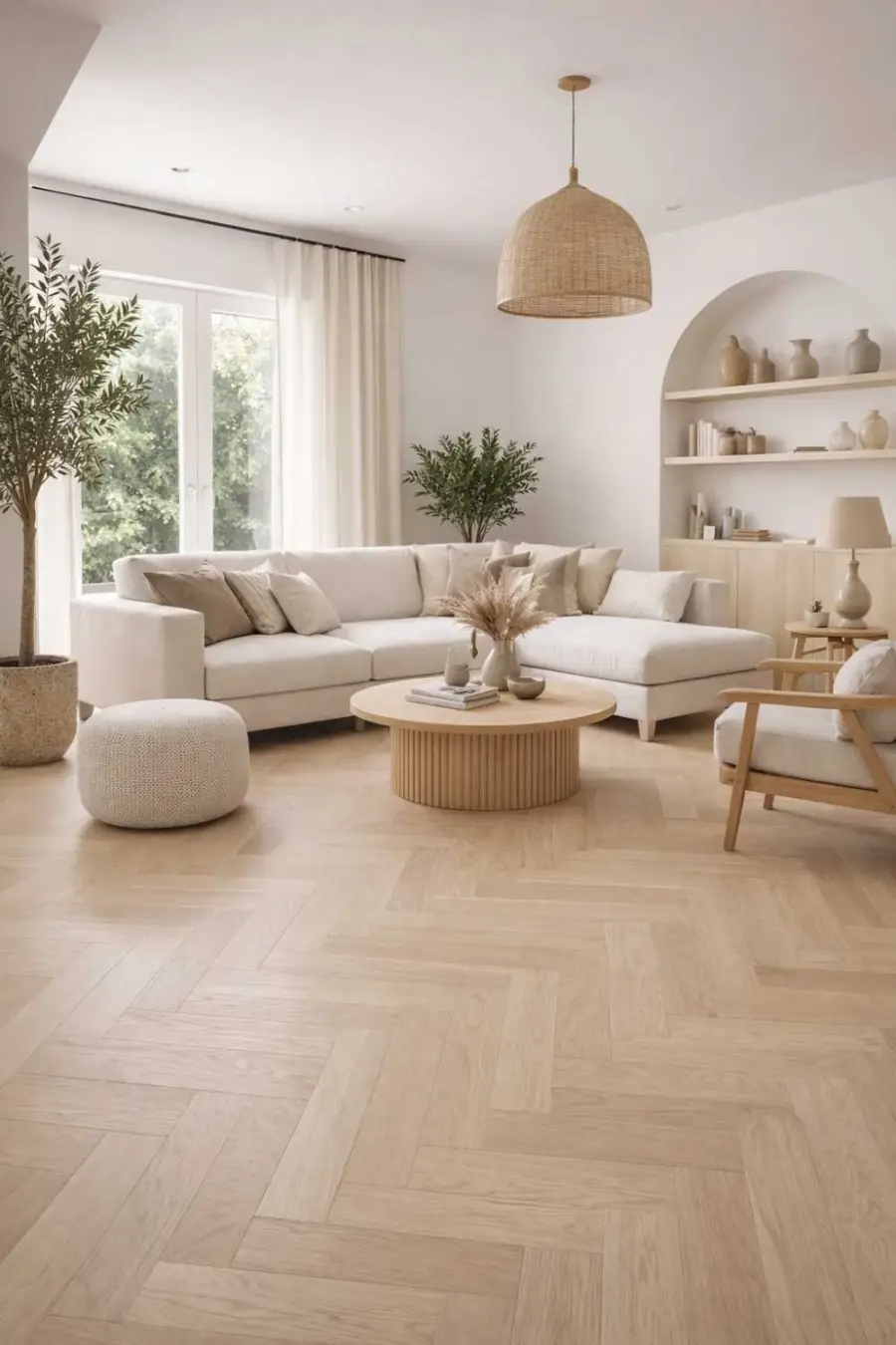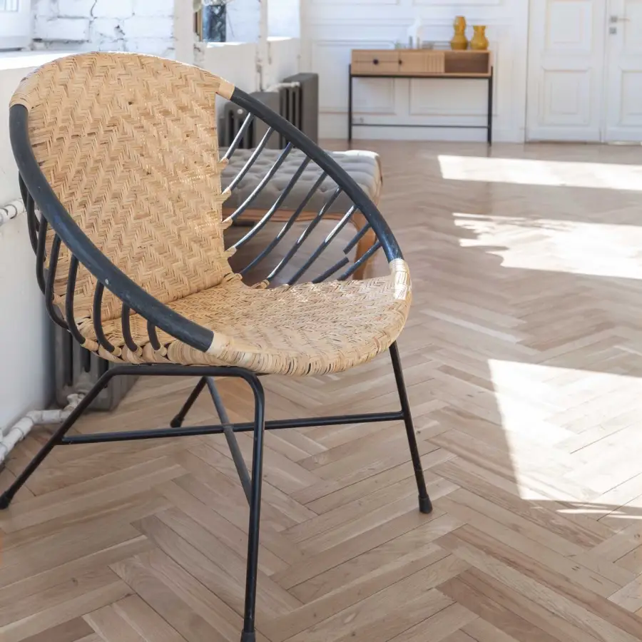 Podłogi drewniane Weitzer Parkett w układzie jodełki to propozycja premium dla osób, które cenią elegancję, naturalne materiały i ponadczasowy styl. Charakterystyczny wzór jodły w połączeniu z naturalnym rysunkiem drewna, szczotkowaną powierzchnią oraz 4-stronną v-fugą tworzy wyjątkowy efekt głębi i podkreśla indywidualny charakter każdej deski, nadając wnętrzu niepowtarzalnej klasy i szyku.
