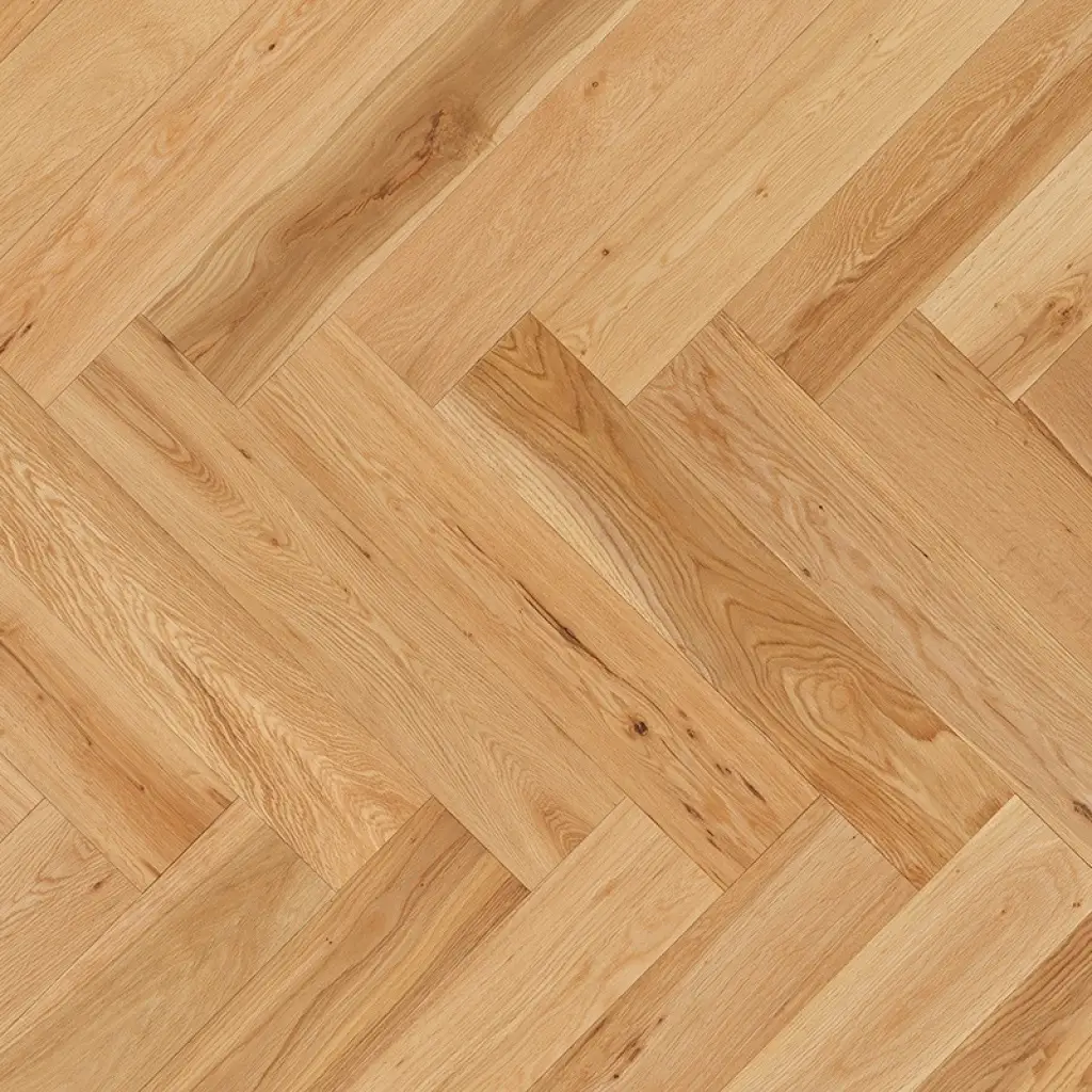 Podłoga w jodełkę z kolekcji Alta Herringbone charakteryzuje się ponadczasową elegancją. Dzięki warstwie wierzchniej o grubści 3 mm, parkiet ten może być kilkukrotnie szlifowany, co pozwoli zachować jego blask na długie lata.