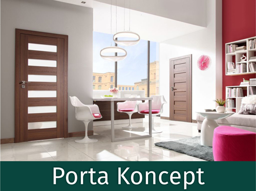 Drzwi z kolekcji Porta KONCEPT odpowiadają najnowszym trendom we wzornictwie użytkowym. Popularne wzory są oparte na trwałej i efektownej konstrukcji ramiakowej składającej się z elementów poziomych i pionowych, z wykorzystaniem najwyższej jakości materiałów drewnianych. Jest to propozycja dla klientów, którzy oczekują drzwi w, których elementy drewniane odgrywają dominującą rolę w konstrukcji skrzydła. Kolekcja jest dostępna w szerokiej gamie kolorystycznej oklein Portadecor co ułatwia dopasowanie drzwi do indywidualnej aranżacji wnętrza.