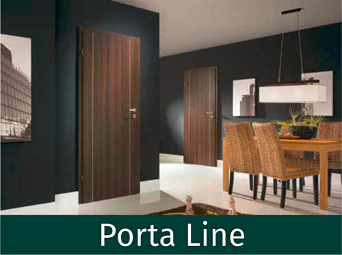 Niezwykły charakter drzwi Porta LINE podkreślają wkomponowane w płaszczyznę skrzydła aluminiowe intarsje. Modele z tej kolekcji dostępne są w szerokiej gamie kolorystycznej wyjątkowo odpornych oklein CPL HQ i Portadur, co pozwala na ich zastosowanie nie tylko w mieszkaniach, ale również w biurach i hotelach.