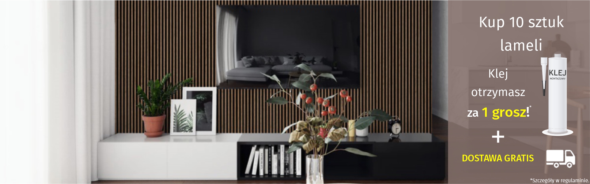 *Szczegóły w regulaminie promocji „Lamele ścienne + KLEJ za 1 grosz”.
